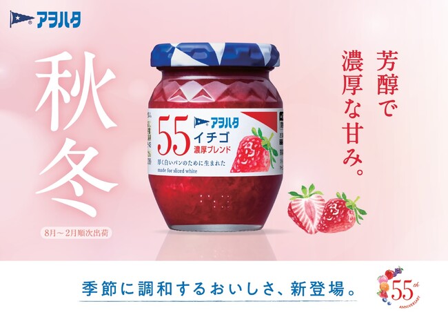 アヲハタ株式会社(本社:広島県竹原市、代表取締役社長:上田敏哉、以下アヲハタ)は、今年発売55周年を迎えた低糖度ジャム「アヲハタ 55」から秋冬限定の「イチゴ 濃厚ブレンド」を2025年8月21日(木)から全国に出荷します。