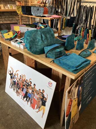 「エシカルな価値観と多世代のつながり」をテーマにした今回のポップアップイベントでは、SMATERIAのバッグやポーチなどが多数展示・販売され、五反田の街に彩りを添えました。