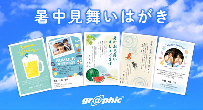 株式会社グラフィック(本社:京都市伏見区、代表取締役社長:西野能央、以下「当社」)はネット印刷事業にて、暑中見舞いのデザインテンプレートを公開しました。無料のデザインテンプレートから選択し、写真や差出人名を編集するだけで暑中見舞いはがきがデザインソフト不要で作成が可能です。