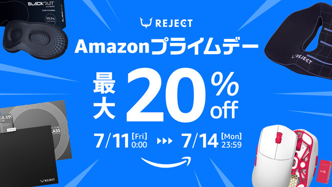 株式会社REJECT(本社:東京都港区、代表取締役:甲山翔也、以下「REJECT」)が展開するゲーミングギアブランド「REJECT GEAR」は、2025年7月8日(火)~7月14日(月)に開催される「Amazon プライムデー先行セール」および「Amazon プライムデー」において、ゲーミングマウス「MAYA X」やアイマスクをはじめとした人気製品を最大20%OFFの特別価格で販売することをお知らせいたします。