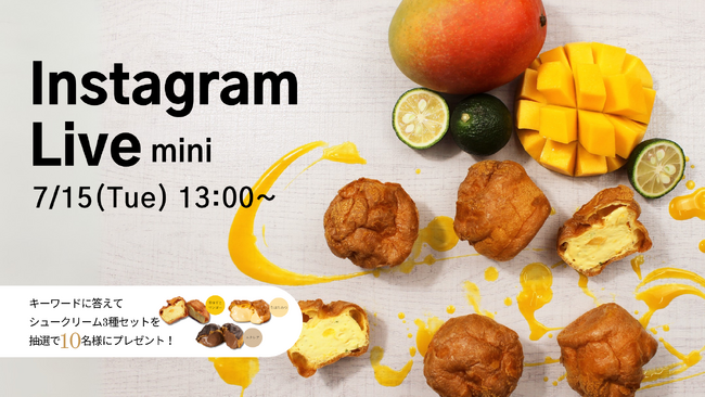 さらに、視聴者限定で製品が当たるキーワードクイズ企画も開催し、正解者の中から抽選で10名様へ、ライブにてご紹介する「シュークリーム3種セット」をプレゼントいたします。
