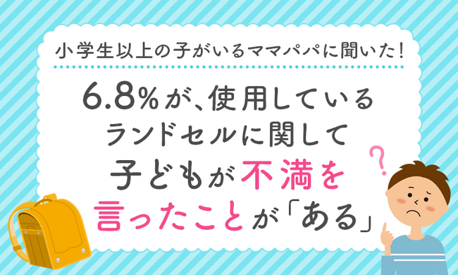 【小学生以上の子がいるママパパに聞いた!】6.8%が、使用しているランドセルに関して子どもが不満を言ったことが「ある」