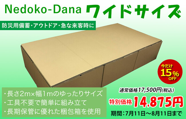 「だんぼーる本舗」は、2025年7月11日(金)より、「ネドコダナ(ワイドサイズ)」の15%OFFセールを開催!