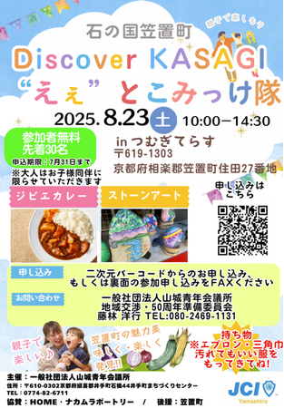 一般社団法人山城青年会議所(活動エリア:京都府南部の8市町村[京田辺市、木津川市、八幡市、井手町、精華町、和束町、笠置町、南山城村])は、この度、笠置町において「Discover KASAGI “えぇ”とこみっけ隊」と題した地域活性化事業を開催いたします。