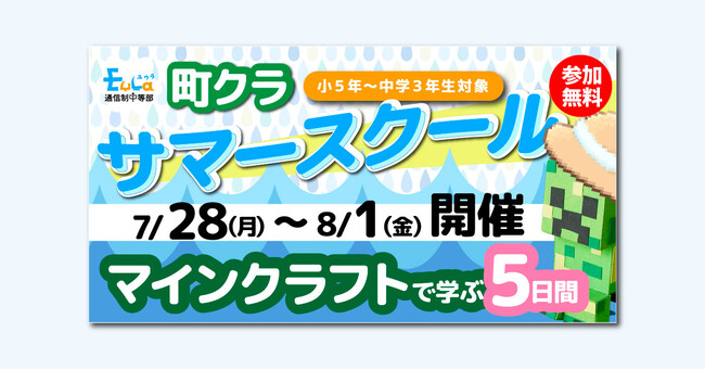 EuLa通信制中等部は、2025年7月下旬にマインクラフトを活用した探究型学習プログラム「町クラ(まちクラフト)」のオンライン体験会を1週間かけて開催いたします。