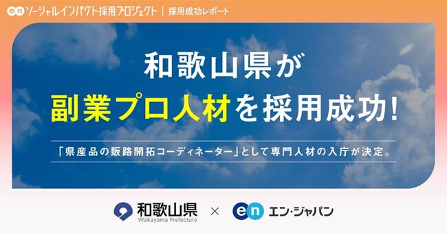 和歌山県、エン・ジャパンを通じて副業人材「県産品の販路開拓コーディネーター」の採用決定