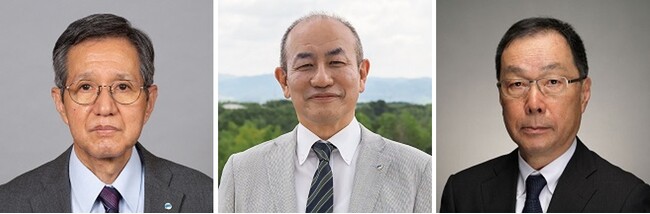 (左)客員教授 石川幸男 (中央)学長 久保康之 (右)教授 佐藤和広