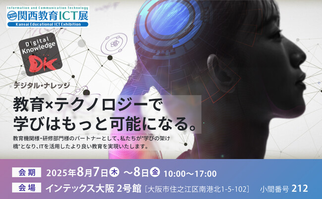 1995年創業、導入実績3000超を誇るeラーニング専門ソリューション企業、デジタル・ナレッジは2025年8月7日(木)~8日(金)に開催される「第10回 関西教育ICT展」に出展致します。