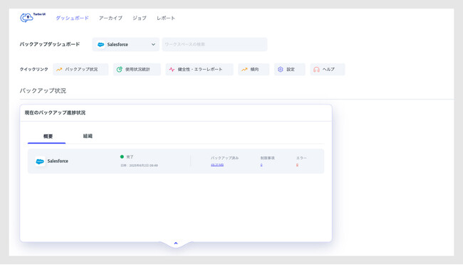 Salesforceの仕様に対応し、APIを最適化しながら企業規模問わずバックアップ負担を軽減するSalesforce向けデータ保護ソリューション。