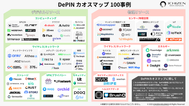 株式会社ICHIZEN HOLDINGS(東京都渋谷区、代表:水野倫太郎)は、ブロックチェーンを活用して現実のインフラを分散型で構築・維持する「DePIN」をテーマとしたカオスマップを公開しました。