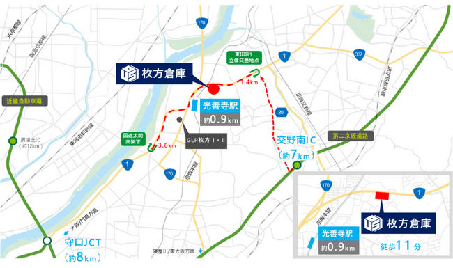 - 京阪本線「光善寺駅」徒歩11分京阪のベッドタウンで雇用確保に適した物流施設