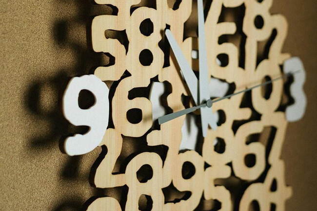 「SO-SU-U」を巧みに切り出した文字盤は、壁に掛けると美しい影を落とします。