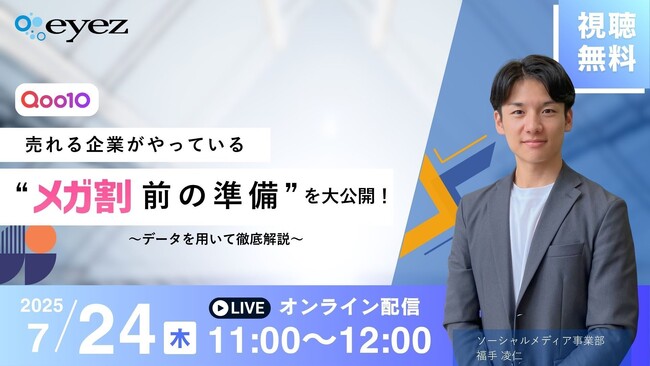 クチコミマーケティングのプラットフォーム「トラミー」を運営する株式会社アイズ(所在地:東京都渋谷区、代表取締役社長:福島範幸、東証グロース:5242)は、7月24日(木)に無料のオンラインセミナー「Qoo10で売れる企業だけがやっている“メガ割前の準備”を大公開」を開催します。