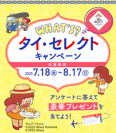 【WHAT’S タイ・セレクト キャンペーン】旅行券50,000円分や最新ナノケアドライヤー、マムアンちゃんグッズやタイ・セレクト食品が抽選で当たる!