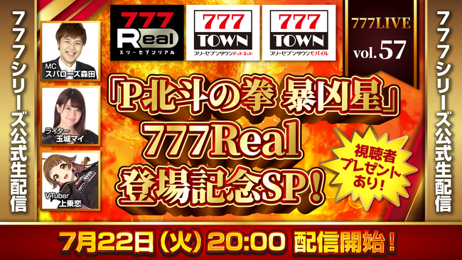 「P北斗の拳 暴凶星」777Real登場記念SP!7月22日(火)20時から「777LIVE Vol.57」生配信