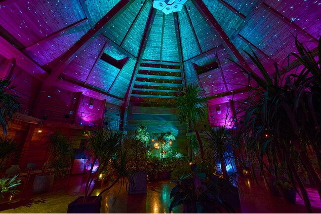 概要:屋内で”癒し”とともに、ひとときの”涼”を感じる企画として実施。高さ約12m、木の温もりを感じる「森のホール」を利用し、光、音、アロマの香り、樹木などの植物で演出するリラックス空間として、多くのお客様にご好評いただいている夏の特別企画です