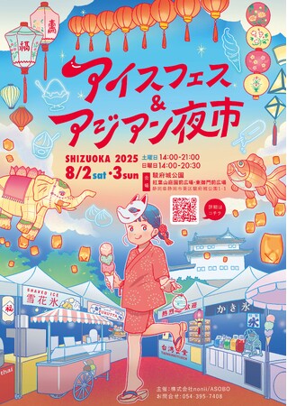 夏休みイベント 8月2・3日 駿府城公園にて開催。ボランティア大募集!入場特典や飲食割引あり。アイスフェス&アジアン夜市 SHIZUOKA 2025