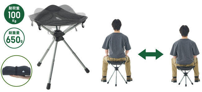 丈夫で軽いスチール素材を使用し、快適な高さに調節が可能な360°回転式三脚スツール「7075回るんスツール」をキャンプや野外イベントなど様々なシーンで、ぜひともご活用ください。