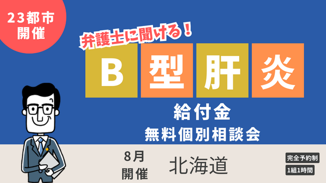 ベリーベスト法律事務所(本店:東京都港区、代表:酒井 将弁護士、浅野 健太郎弁護士、萩原 達也弁護士、HP:https://www.vbest.jp/)は、2025年8月に、北海道の23都市にてB型肝炎給付金に関する無料の個別相談会を開催いたします。