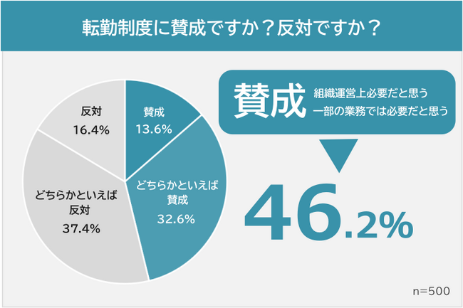 お仕事をしている500人に「転勤制度への賛否」を聞きました。