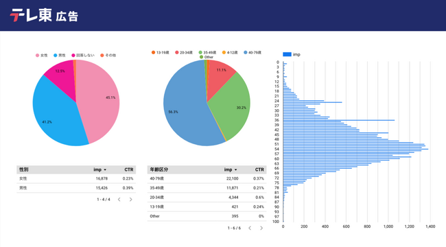 株式会社テレビ東京(本社:東京都港区、代表取締役社長:吉次 弘志)と株式会社テレビ東京コミュニケーションズ(本社:東京都港区、代表取締役社長:福田 一平)が運営するTVerCMセルフ出稿サービスは、サービスの利用者向けのレポート機能を大幅に拡充し、CM視聴者の年齢・性別や興味関心などを管理画面から確認できる機能を追加しました。さらに、CM配信の期間中から、視聴データなどのレポートを確認することができるようになるなど、広告配信状況についてより早く、かつより詳細にご確認いただけるようになりました。