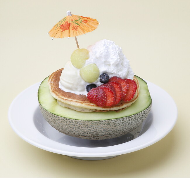 メロンの甘みを存分に感じられるようバニラアイスとホイップだけのシンプルなパンケーキにしました。