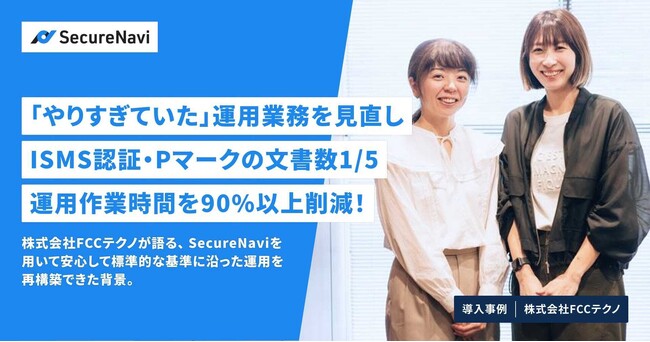 DX・ITコンサルティング、システム開発・運用保守、BPOを主軸事業とする株式会社FCCテクノが、ISMS・Pマークオートメーションツール「SecureNavi」を導入し、運用の適正化と効率化を実現したことをお知らせいたします。