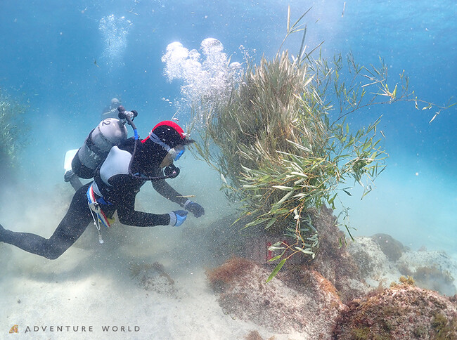 白浜の海では、近年の海水温の上昇や藻類を食べる魚の分布拡大により、アオリイカの産卵に適した海藻が減少しています。一方、里山では放置竹林の増加が課題となっており、竹の管理と活用が求められています。アドベンチャーワールドでは、伐採した竹をジャイアントパンダの食事として利用してきましたが、パンダは枝葉の一部しか食べないため、食べ残しが大量に発生します。その残った竹を束ねて海に沈め、アオリイカの産卵床や小型生物の生息基盤として再活用する取り組みを2022年から実施しています。2025年6月にパンダは中国へ帰国しましたが、本活動は自然環境の保全と地域との連携を目的とした継続的なプロジェクトとして、今後も実施していきます。また、アオリイカが藻類食性魚類の稚魚を捕食することが確認されており、磯焼け対策の一助となる可能性もあります。さらに、沈めた竹には巻貝などが集まり、竹が分解された有機物が海中の栄養循環に寄与する可能性も示されています。今後も調査と活用を進めながら、自治体・教育機関・地域の住民や漁業関係者など多様な主体と連携し、里山と里海をつなぐ広域的な環境保全モデルの構築を目指します。