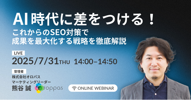 SEOツール「パスカル」の開発・提供を行う株式会社オロパスは、2025年7月31日(木)に「 AI時代に差をつける!これからのSEO対策で成果を最大化する戦略を徹底解説」をテーマに無料ウェビナーを開催いたします。