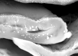 無機微粒子が複合化された難燃パルプのSEM画像(倍率5,500倍)