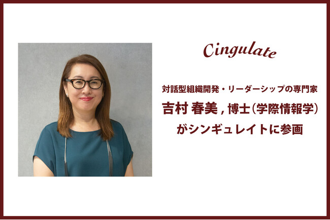 [画像3: https://prcdn.freetls.fastly.net/release_image/108039/44/108039-44-7e94eb2557432db9f70e6a74875e572d-1000x1000.jpg?width=536&quality=85%2C75&format=jpeg&auto=webp&fit=bounds&bg-color=fff ]シンギュレイトは、この度、組織コミュニケーションと対話型組織開発の深い知見を持つ吉村春美さんを迎え入れました。