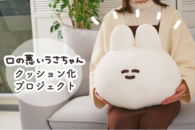 LINEスタンプで大人気!イラストレーターナポリさんの描く「口の悪いうさちゃん」がモチモチクッションになって登場!
