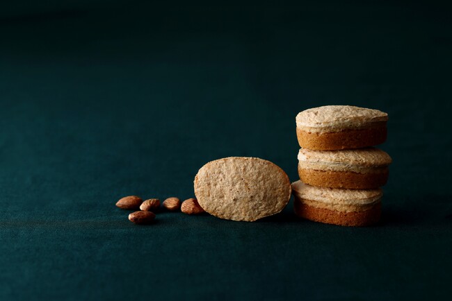 こだわりフィナンシェ×しっとりダクワーズ。香ばしく焼き上げた二層の生地に、とろけるショコラとプラリネのコク。アーモンドの豊かな余韻が、ふわりと広がる。