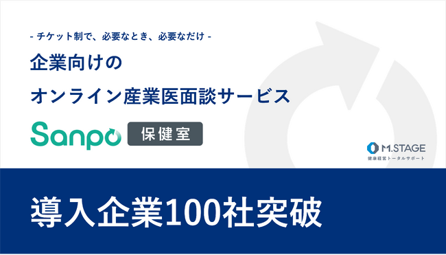 事業場向け産業保健支援、医療人材総合サービスを提供する株式会社エムステージ(本社:東京都品川区、代表取締役:杉田雄二)は、当社が提供するオンライン産業医面談サービス『Sanpo保健室』の導入企業が、100社を突破したことをお知らせいたします。