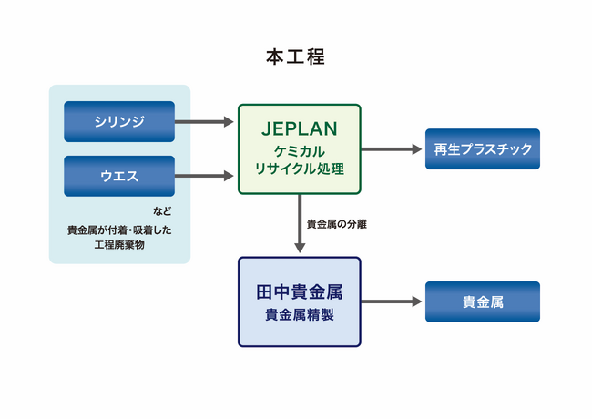 また、本プロセスでは貴金属だけでなくプラスチックの再生も可能であり、田中貴金属とJEPLANがそれぞれの専門領域で脱炭素・循環型社会の実現に貢献します。