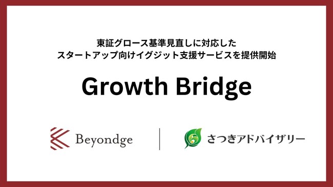 スタートアップの創出・バリューアップと大企業のグロースハックを強みとするBeyondge株式会社(本社:東京都渋谷区、代表取締役CEO:野上 隆徳、以下:当社)は、スタートアップ向け並走型CFOサービス「Wiz CFO(R)」を展開するさつきアドバイザリー株式会社と共同で、スタートアップのグロースとイグジットを支援する伴走支援サービス「Growth Bridge」の提供を開始したことをお知らせいたします。東証グロース市場の上場維持基準厳格化により、IPOと並ぶイグジット戦略としてM&Aの重要性が高まる中、両社の強みを融合し、デュアルトラックでの出口戦略の実現をサポートします。