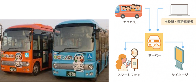 恵庭市が運行する「エコバス※」の本年9月1日からの既存路線変更と新規路線拡大の運行体制変更に合わせ、今般、ユニ・トランドが提供する「Web版バスロケーションシステム」と「デジタルサイネージシステム」を活用した利用者増・利便性向上の取り組みが、国の「新しい地方経済・生活環境創生交付金※(デジタル実装型)」の対象事業(以下 本事業)として採択されました。