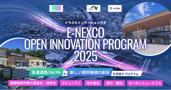 株式会社eiicon(エイコン 本社所在地:文京区後楽、代表取締役社長:中村 亜由子、以下「eiicon」)が運営する日本最大級のオープンイノベーションプラットフォーム「AUBA(アウバ)」は、2025年8月1日(金) より、東日本高速道路株式会社(本社:千代田区霞が関、代表取締役社長 由木 文彦、以下「NEXCO東日本」)ドラぷらイノベーションラボが主催するアクセラレーションプログラム『E-NEXCO OPEN INNOVATION PROGRAM 2025(以下、本プログラム)』の開催、ならびに本日より、本プログラムにてNEXCO東日本とともに高速道路事業のアップデートと新たなビジネスの創出を目指す共創パートナーの募集を開始することをお知らせします。