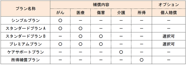 ※ ケアサポートプラン、所得補償プラン以外の全てのプランに<標準タイプ>と<女性向けタイプ>をご用意しております。