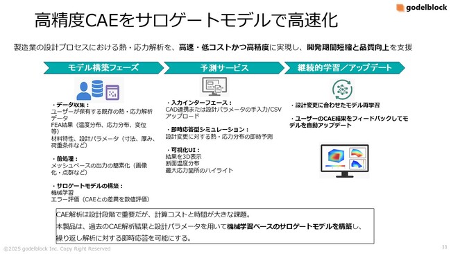 株式会社ゴーデルブロックは"リアルタイムシミュレーションの実現"を掲げて「より早く」「より簡単に」「より高精度な」シミュレーション環境のご提供と課題解決をご支援しています。今回は機械学習を活用した高速シミュレーション(サロゲートモデル)を用いたリアルタイムシミュレーションシステムによる熱・応力解析の実証実験を実施いたします。