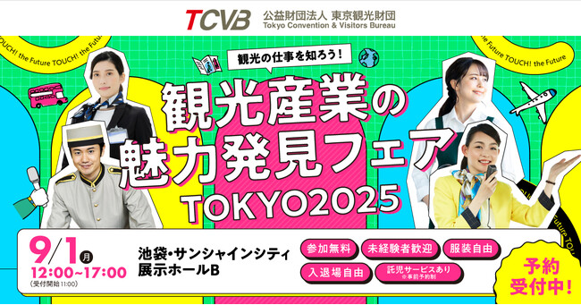 東京都及び(公財)東京観光財団は、観光の仕事のやりがいや魅力を伝えるため、「観光産業の魅力向上応援事業」を実施し、イベントの開催や、職場見学・就業体験等を行います。