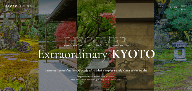 この度の英語版ホームページのリニューアルでは、京都を初めて訪れる方から、何度も足を運ばれている方まで、幅広い方々にとって有意義な情報源となることを目指しています。定番の観光ルートには含まれない、京都春秋が厳選した寺院の特別公開情報をはじめ、各寺院の見どころや周辺の文化体験とともに親しみやすくご紹介することで、当社ならではの視点で特別な京都の楽しみ方をご提案いたします。