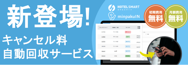 セルフチェックインシステム・PMSの【HOTEL SMART・minpakuIN】は宿泊施設向けにキャンセル料を自動で請求・回収まで行えるサービスをリリースしました。