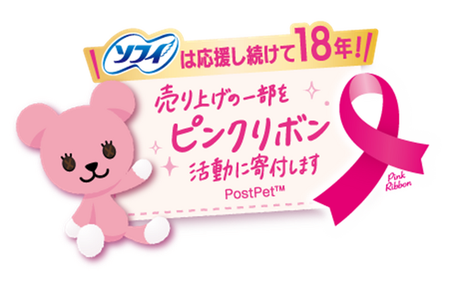 当社は2008年より「乳がんに関する正しい知識の普及とがん検診受診率の向上」に貢献するべく「ピンクリボン活動」を継続しており、18年目となる今年も、特設サイトでの情報発信とともに、『ソフィ ボディフィット』の「ピンクリボンデザインパッケージ」を期間限定で発売し、その売上の一部を寄付します。