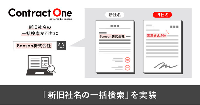 働き方を変えるDXサービスを提供するSansan株式会社は、AI契約データベース「Contract One(コントラクトワン)」において、2025年8月7日より検索機能をアップデートし、新旧社名の一括検索が可能になったことを発表します。