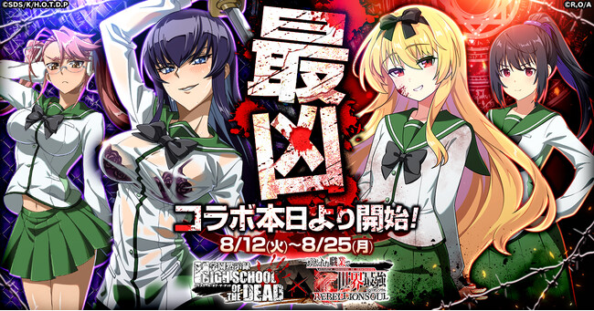 CTW株式会社は、G123で好評配信中のブラウザゲーム『ありふれた職業で世界最強 リベリオンソウル』にて、アニメ『学園黙示録 HIGHSCHOOL OF THE DEAD』とのコラボイベントを開始いたしました。