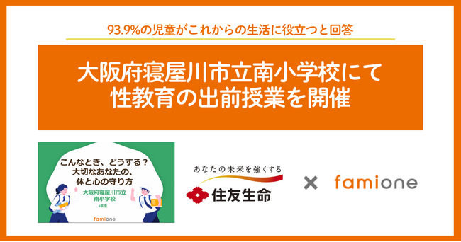 「子どもを願うすべての人によりそい 幸せな人生を歩める社会をつくる」をビジョンに掲げ、法人の従業員向け福利厚生や自治体の住民向け支援を行うヘルスケアサポートサービス「ファミワン」 https://famione.com/benefit/ などを展開する株式会社ファミワン(本社:東京都渋谷区、代表取締役:石川勇介)は、2025年6月に住友生命保険相互会社(本社:大阪府大阪市、取締役 代表執行役社長:高田 幸徳)との協業に関するプロジェクトの一環として、性教育に関する出前授業を、大阪府の寝屋川市立南小学校4年生に向けてオンライン開催しました。