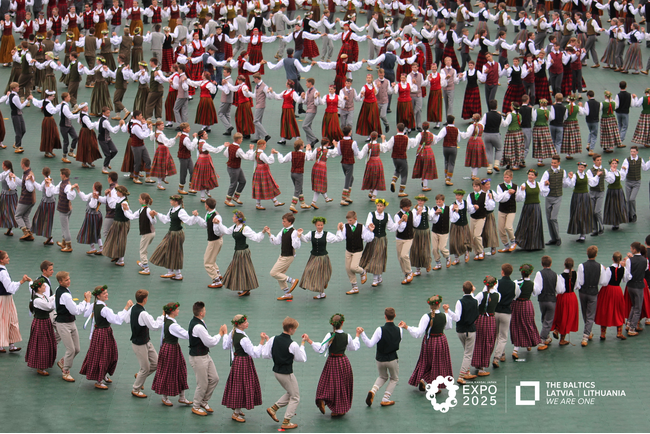 この記念すべき日に開催される「バルトの日」では、両国の伝統的な衣装の展示、音楽やダンスのライブパフォーマンス、各国の伝統工芸のワークショップなどを通じて、バルト地域の文化の豊かさを紹介します。ラトビアとリトアニアでは5年に一度、約4万人が参加する大規模な「歌と踊りの祭典」が開催されており、ユネスコ無形文化遺産にも登録されています。地域のつながりとアイデンティティを育むこの祭典は、各国の文化的誇りを象徴する存在です。バルトの日では、その一端を体感できるステージが展開されます。またイベントのハイライトとして、バルトパビリオン内で「We Are One」のテーマを象徴する人間の輪を形成し、参加者全員で国境を越えて「共に手を取り合い、行動し、学び合う」繋がりの大切さを体感します。当日、ラトビア文化省事務次官ダーツェ・ヴィルソーネ氏とリトアニア文化大臣のシャルーナス・ビルティス氏の出席も予定しており、文化を通じた国際的な絆と未来へのメッセージが届けられます。