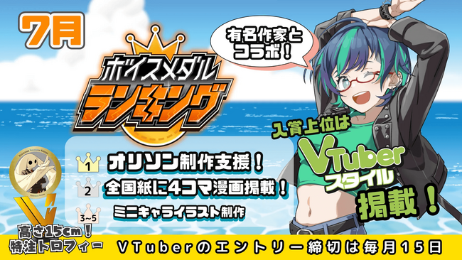 CrossVision、V-tampにおける7月度「ボイスメダル」販売数トップ5のVTuberランキングを発表