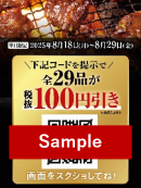 •内容 :対象商品29品が、各1皿100円引き ※各1品1皿のみ割引適用。